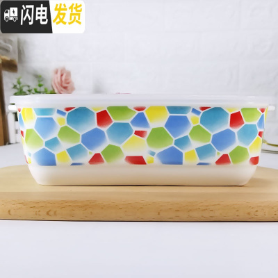 三维工匠卡当盒微波炉专用长方型陶瓷饭盒上班族轻便简约三格分格带盖 长方三格水立方