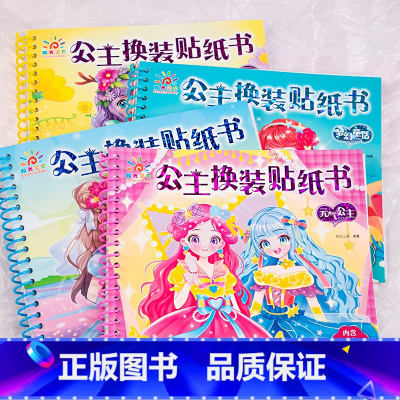 全套4册公主换装贴纸书 [正版]全套4册儿童公主换装贴纸书儿童动脑益智力玩具 梦幻元气公主女孩换衣服趣味粘贴画3-6岁
