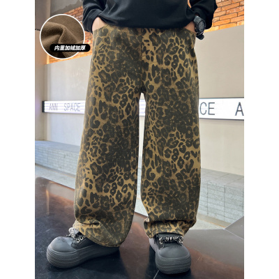 男童秋冬装加绒裤子新款豹纹休闲长裤儿童冬季保暖痞帅直筒裤