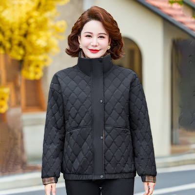 新款小翻领妈妈装棉衣外套中老年女士休闲短款棉服中年女冬装