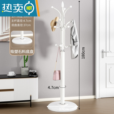 敬平大理石衣帽架落地卧室挂衣架房间立式衣服架子简约现代家用晾衣架 象牙白-白底盘[加重石料底盘]