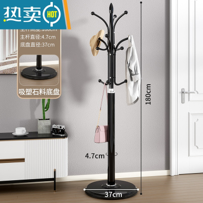 敬平大理石衣帽架落地卧室挂衣架房间立式衣服架子简约现代家用晾衣架 经典黑-黑底盘[加重石料底盘]