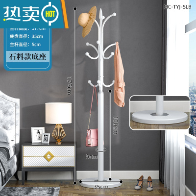 敬平简易大理石衣帽架落地家用卧室挂衣架立式客厅现代简约晾衣服架子 亮光白-[35cm石料底盘+12钩款]承重40K晾晒架