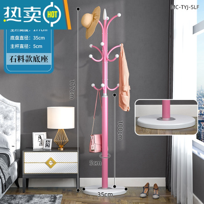 敬平简易大理石衣帽架落地家用卧室挂衣架立式客厅现代简约晾衣服架子 公主粉-[35cm石料底盘+12钩款]承重40K晾晒架