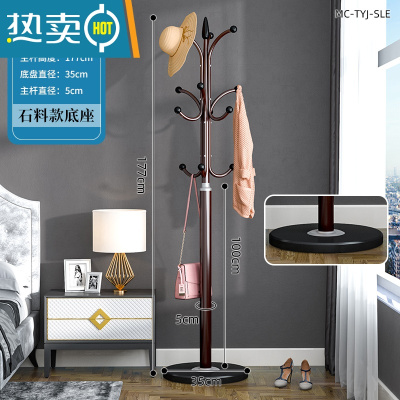 敬平简易大理石衣帽架落地家用卧室挂衣架立式客厅现代简约晾衣服架子 古铜色-[35cm石料底盘+12钩款]承重40K晾晒架