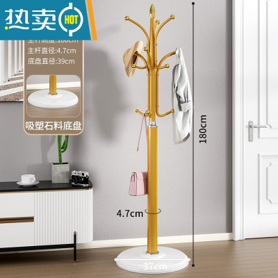 敬平大理石衣帽架落地卧室挂衣架房间立式衣服架子简约现代家用晾衣架 耀光金-白底盘[加重石料底盘]