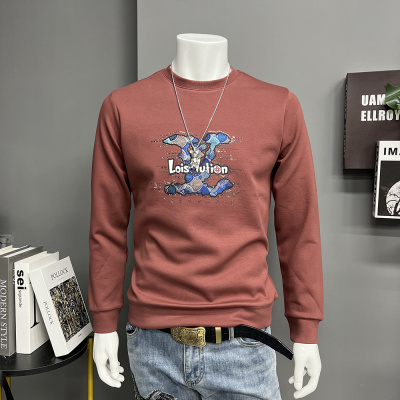 新款圆领卫衣男春秋季韩版潮流印花简约长袖T恤男打底衫上衣