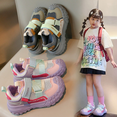 儿童透气网面运动鞋男女童夏新款魔术贴学生老爹鞋休闲跑步鞋