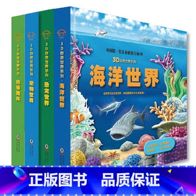 4册[儿童科普3D立体书]套装 [正版]探秘海洋世界立体书海底动物王国中国第一套儿童科普3d自然世界系列揭秘海洋生物趣味