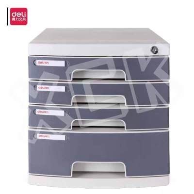 得力8854 4层带锁手拉办公桌书桌 桌面收纳盒文件柜抽屉式收纳储物资料柜带索引标签试卷学科分类灰色