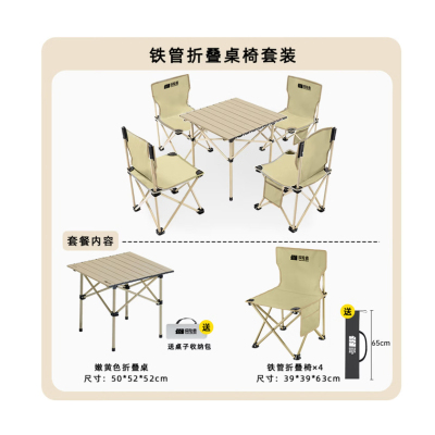 探险者 户外桌椅帐篷天幕露营推车带桌板折叠桌折叠椅露营装备全套 一桌四椅