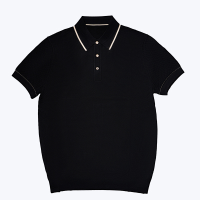 尘界舒适平纹长绒棉翻领纯色短袖商务休闲男装T恤衫