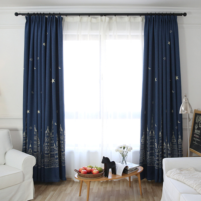 儿童绣花遮光窗帘成品男孩房儿童房卧室落地窗飘窗帘