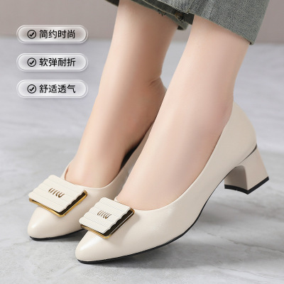 新款真皮粗跟单鞋女妈妈鞋中跟气质软底法式职业四季工作鞋