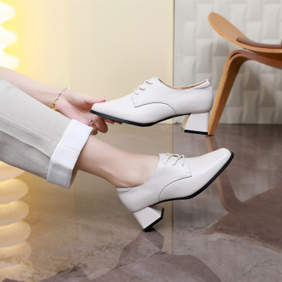 系带复古小皮鞋25秋季新款女鞋方头粗跟中跟低帮鞋深口31小码单鞋