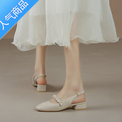 SUNTEK包头凉鞋女2023年新款夏季韩系时装鞋粗跟中跟半拖法式高跟鞋