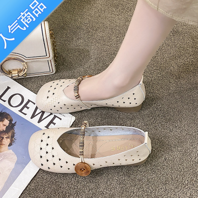 SUNTEK软底粗跟单鞋女中跟浅口鞋子2023春夏新款奶奶乐福鞋镂空凉鞋