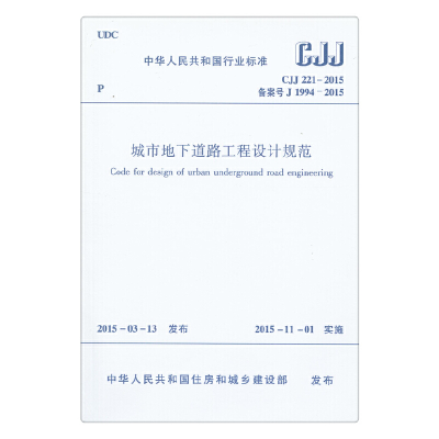 [正版]CJJ 221-2015 城市地下道路工程设计规范 城市道路工程设计标准 中国建筑工业出版社