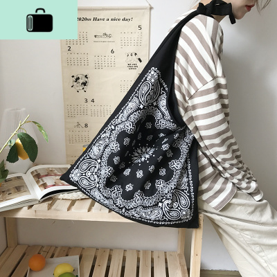 ins风佛系单肩包民族风黑色帆布袋简约大容量百搭包包个性背包NEW LAKE 双面印花黑色单肩女士单肩包