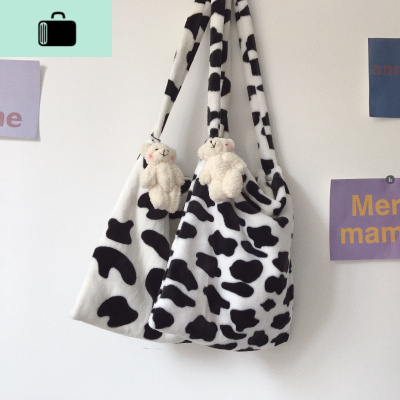 唐糖包袋/斜挎布包女 可爱奶牛花纹小清新挎包学生单肩包帆布背包NEW LAKE女士单肩包