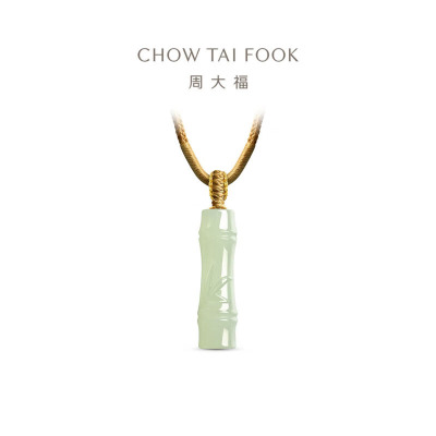 周大福新中式竹节寓意节节高升和田玉吊坠配绳GEV52