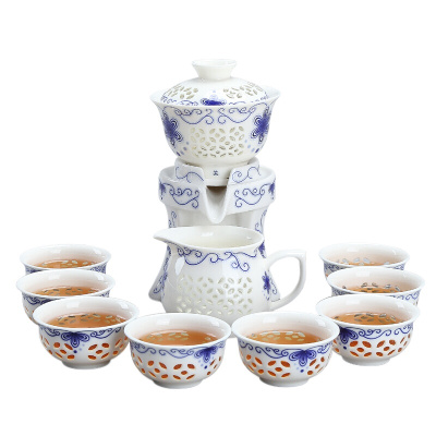懒人自动茶具套装 镂空玲珑蜂窝自动茶具泡茶器 春花得意礼盒装