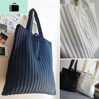 秋新款蕾丝镂空帆布包包网眼单肩包女书包文艺纯色竖条纹布袋子NEW LAKE女士单肩包
