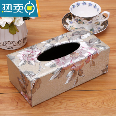 敬平家用客厅茶几餐巾纸抽盒创意面纸盒简约餐厅家居抽纸盒 深灰色 壁纸紫玉花卉中号纸巾盒
