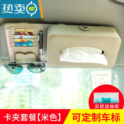 敬平车载纸巾盒挂式车顶天窗前排装饰可爱遮阳板扶手箱汽车车用抽纸盒 两件套装[米色挂式+卡夹]