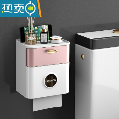 敬平卫生间纸巾盒免打孔壁挂式厕所防水厕纸盒抽纸盒卫生纸卷纸置物架 轻奢镀金款-粉色