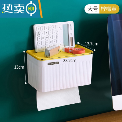 敬平简约卫生间纸巾盒免打孔厕所防水抽纸盒卷纸筒壁挂式卫生纸置物架 柠檬黄-大号(所有纸巾都可用)
