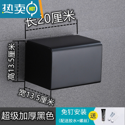 敬平厕所防水免打孔式抽纸盒卷纸架洗手间太空铝用品大全 防水方型加长20厘米[典雅黑]纸巾盒