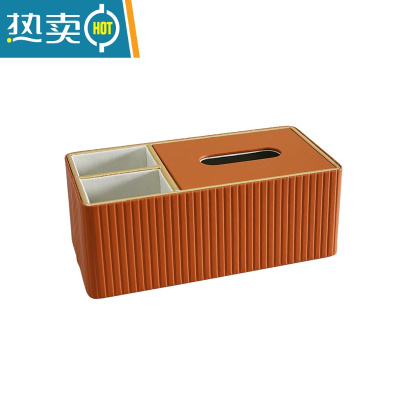 敬平轻奢纸巾盒套装家用装饰样板间客厅茶几餐桌多功能收纳抽纸盒 橙色意式条纹分格纸巾盒