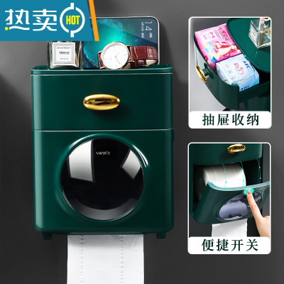 敬平今米卫生纸盒卫生间纸巾厕所厕纸抽纸卷纸置物架洗手间防水免打孔 双层轻奢绿[滚轮设计+贴心大抽屉]纸巾盒