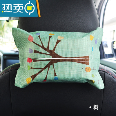 敬平车载纸巾盒挂式多功能遮阳板车用纸抽盒创意可爱卡通汽车抽纸盒 清新树