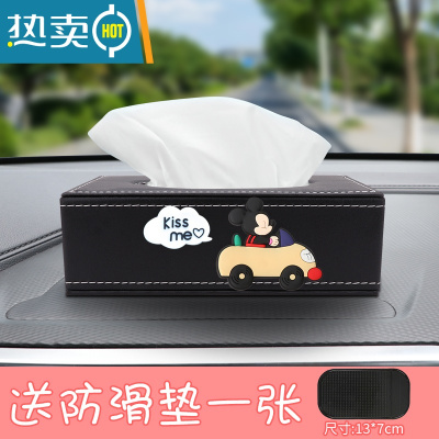 敬平汽车载纸巾盒车上扶手箱抽纸盒创意可爱车用餐巾纸车内饰用品挂式 [黄车米奇]送防滑垫+纸巾一包