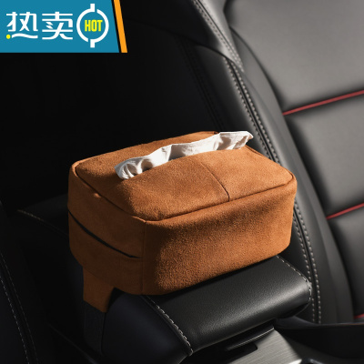 敬平车载纸巾盒车内餐巾抽纸盒汽车扶手箱绑带车用抽纸包创意椅背挂式 超纤翻毛皮[干邑棕]- 送抽纸