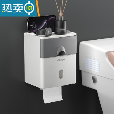 敬平免打孔纸巾架创意防水厕纸盒卫生间纸巾盒厕所置物架抽纸盒 2个装,升级款灰[抽屉收纳,出纸顺滑]