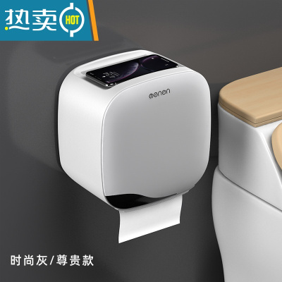 敬平厕所卫生纸置物架卫生间纸巾盒厕纸盒免打孔防水卷纸筒创意抽纸盒 时尚灰[尊贵款]