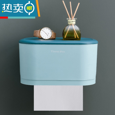 敬平卫生间纸巾盒壁挂式防水厕纸盒免打孔抽纸盒厕所卫生纸卷纸置物架 高品质拼色款-静谧蓝/一键弹盖