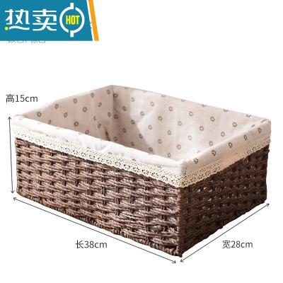 敬平创意手工编织抽纸盒欧式家用纸巾盒桌面简约纸巾收纳盒客厅纸抽盒 小雏菊衬布棕色筐(大号)