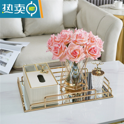 敬平北欧装饰纸巾盒轻奢茶几收纳盒套装客厅餐桌多功能收纳纸抽盒 白色意式套装+深粉手感玫瑰 +牙签罐