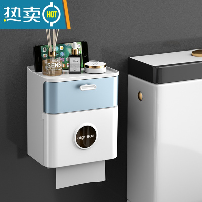 敬平卫生间纸巾盒免打孔壁挂式厕所防水厕纸盒抽纸盒卫生纸卷纸置物架 [双层]北欧蓝