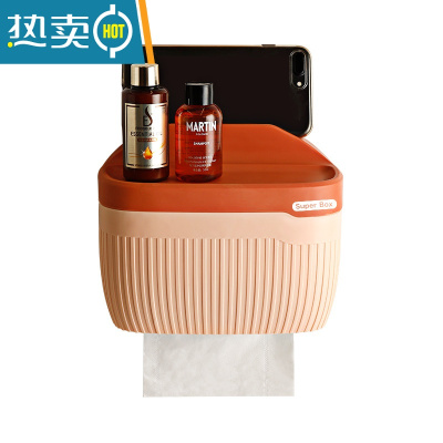敬平简约卫生间纸巾盒免打孔厕所防水抽纸盒卷纸筒壁挂式卫生纸置物架 北欧粉小号
