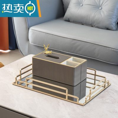 敬平纸巾盒抽纸盒家用客厅轻奢茶几纸抽盒餐桌皮革多功能遥控器收纳盒 套装七