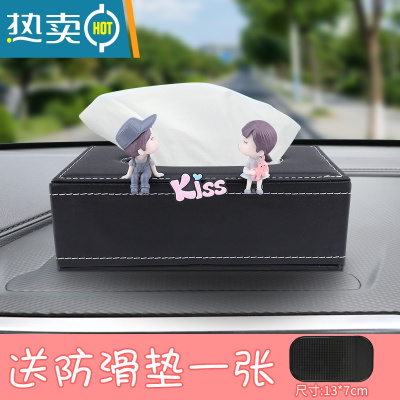 敬平汽车载纸巾盒车上扶手箱抽纸盒创意可爱车用餐巾纸车内饰用品挂式 [灰色情侣]送防滑垫+纸巾一包