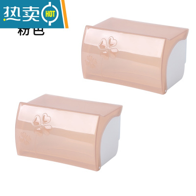 敬平卷纸盒卫生间家用挂壁式免打孔创意防水厕所纸巾置物架浴室卷纸筒 两只装-粉色纸巾盒