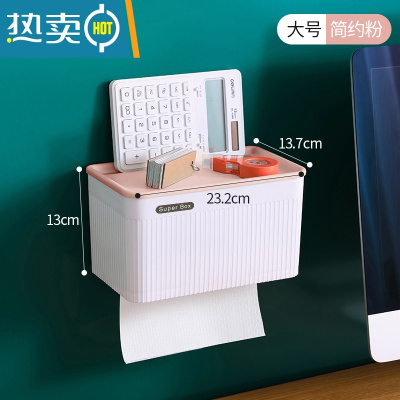 敬平简约卫生间纸巾盒免打孔厕所防水抽纸盒卷纸筒壁挂式卫生纸置物架 简约粉-大号(所有纸巾都可用)