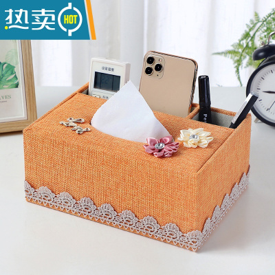 敬平多功能纸巾盒子客厅抽纸盒家用创意茶几遥控器布艺网红收纳盒欧式 后三格橘黄