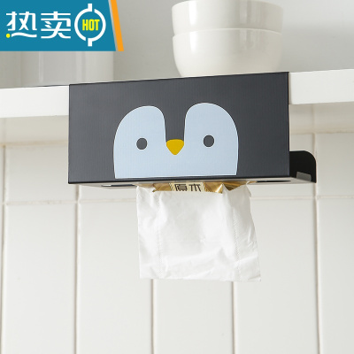 敬平厨房纸巾架免打孔用纸架悬挂收纳创意倒挂抽纸盒橱柜壁挂卷纸挂架 企鹅款纸巾盒